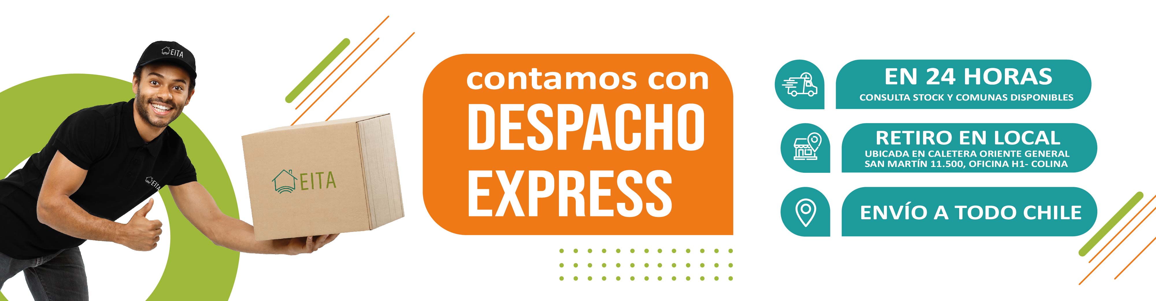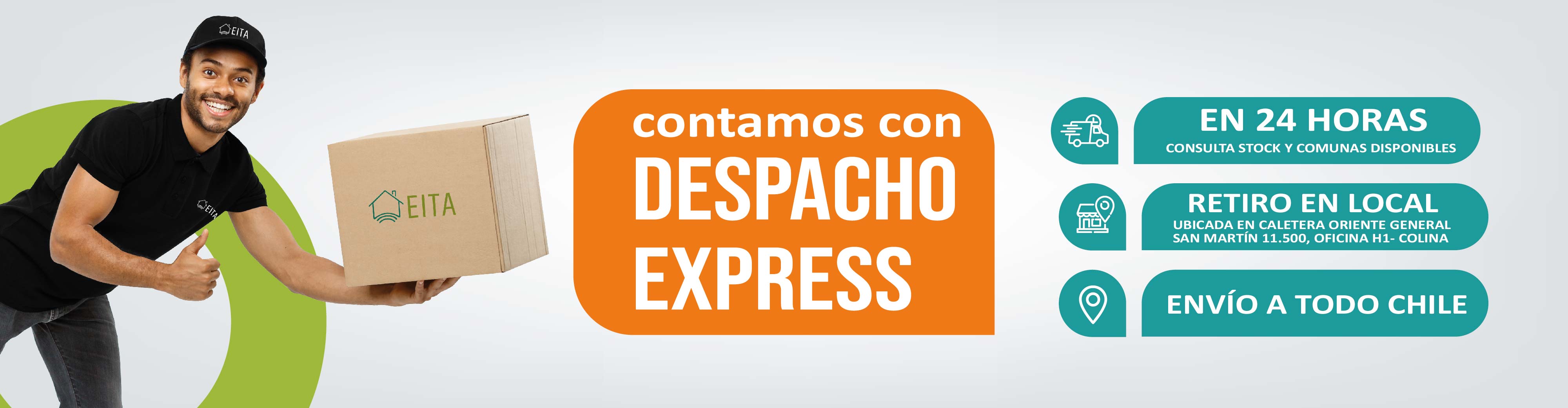 En EITA, nos destacamos por la rapidez en la gestión y entrega de pedidos. Ofrecemos un servicio de despachos express, porque entendemos la importancia de la inmediatez para nuestros clientes. Nuestra eficiencia y compromiso con la calidad son lo que nos hace resaltar en el mercado. Además, contamos con una bodega para que nuestros clientes puedan retirar su pedido en persona, brindándoles una alternativa cómoda y segura.